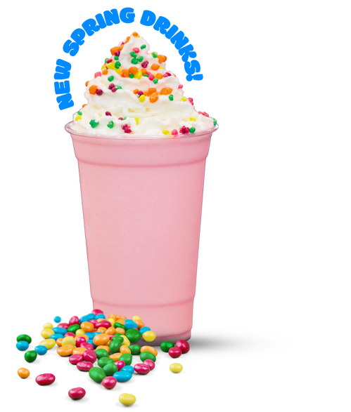 {lemon + vanilla bean + sour blast + milk + ice, blended together + topped with whipped cream & nerds}